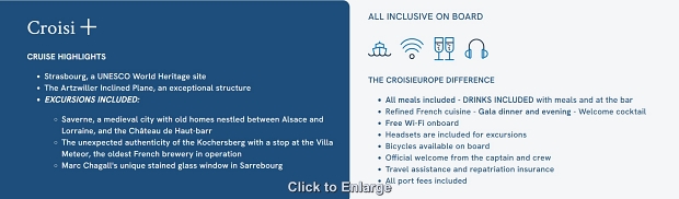 These are Great Deals to become familiar with CroisiEurope. Space is Very Limited! Book your cabin ASAP. Click for Booking Procedures.